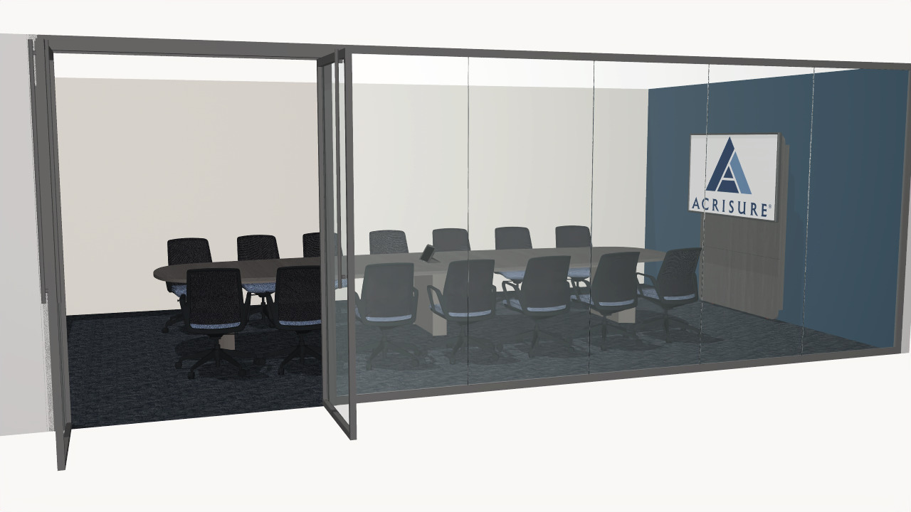 One of the first steps in the design planning process was developing detailed renderings to give the Acrisure team a clear picture of how their refreshed space would look and feel. These visualizations allowed the team to explore layout options, finishes, and furnishings before moving forward, ensuring the design aligned with Acrisure’s brand and goals. By seeing realistic previews, the client gained confidence in the direction of the project and could make informed decisions early on. The renderings also served as a valuable tool for phasing the project, helping both teams stay aligned from inspiration to installation.